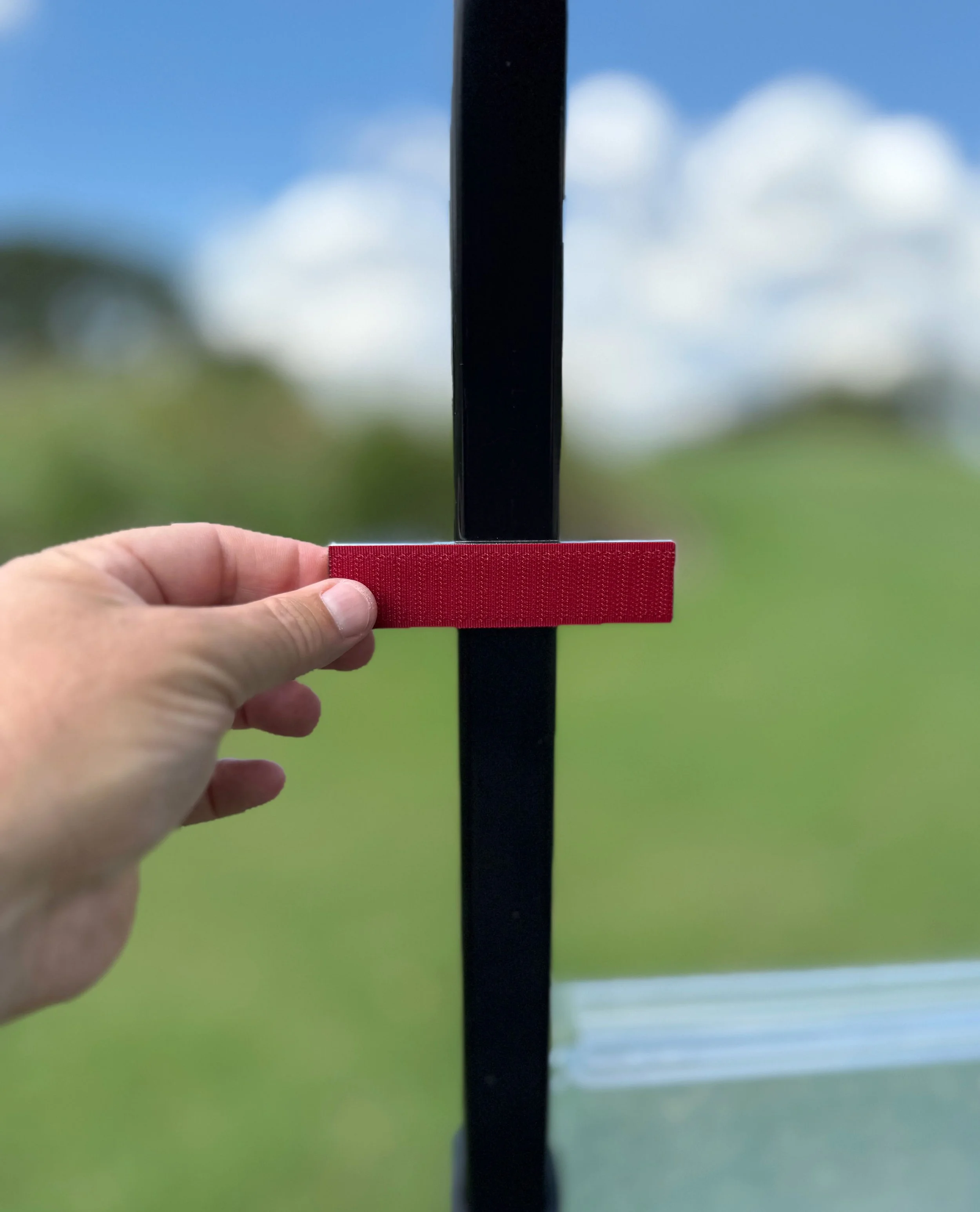 The Portable Glove Mount® features an industrial strength neodymium magnet, with significant attractive forces to other metals, such that extreme caution should be exercised when attaching the magnet to the frame of a golf cart, or other metallic objects. The magnet should be initially positioned perpendicular to the metallic golf cart frame, so as to prevent injury during attachment, and rotated 90 degrees into optimal mounting position. The reverse steps should be followed to remove the magnet before storing the magnet back in the canvas case.